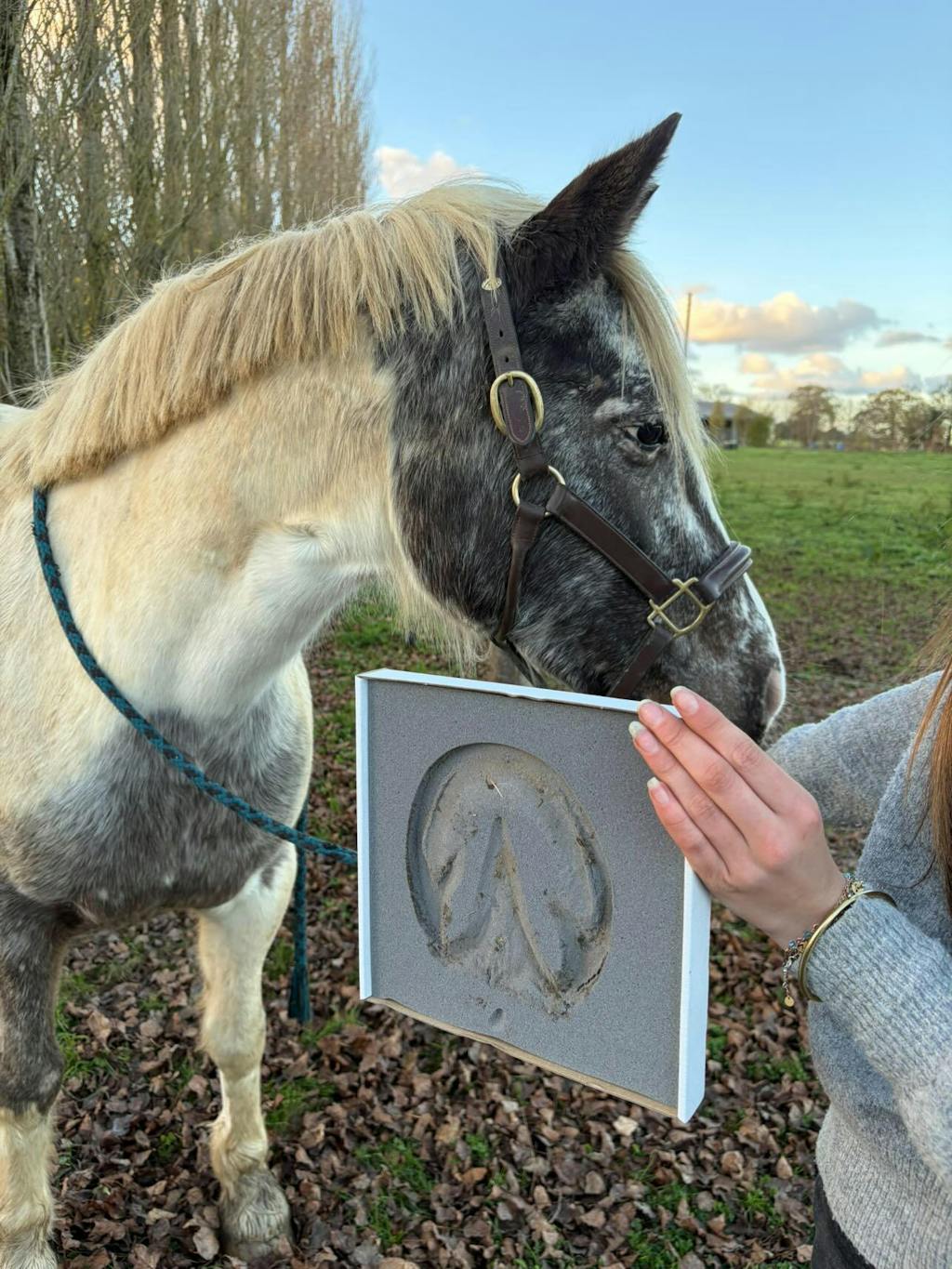 On a testĂ© le kit avec notre vieille jument, un vrai moment de complicitĂ©. On apprĂ©hendait un peu au dĂ©but, mais tout est super bien expliquĂ© et le rĂ©sultat est bluffant. On distingue chaque dĂ©tail du sabot, câest impressionnant. Un trĂšs beau souvenir Ă garder prĂ©cieusement, merci pour cette belle idĂ©e !