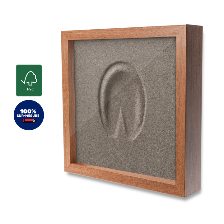 Sa profondeur étudiée et son design permettent d’exposer l’empreinte tout en la conservant dans le temps.